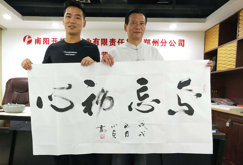 近日,中国将军书画院的名誉院长刘小克大师莅临开拓者易货(郑州运营中心),为公司题字并赠字。