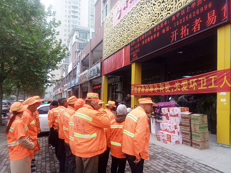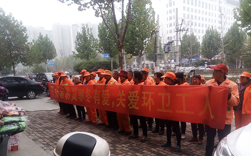 寒冬来临,我们的环卫工人依然起早贪黑坚守在工作岗位上,正因为有了他们的辛苦劳动,才有我们干净整洁的生活环境。为了表达对他们的敬意,开拓者易货(南阳店)于2018年11月14日上午9点开展寒冬有爱,关爱环卫工人爱心公益活动。让奋战在寒冬季节的环卫工人们感受到来自社会各界爱心企事业的关心,让这份暖意流淌在心里。